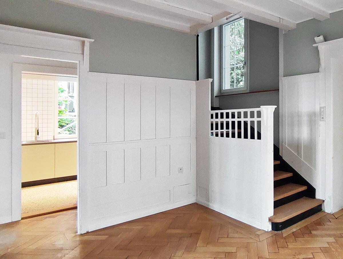 Die Villa liegt an fantastischer Lage am Freudenberg mit Blick auf die Altstadt von St.Gallen. Das Klosterviertel liegt ihr zu Füssen. Der Altbau aus dem Jahr 1909, umgeben von altem, wertvollem Baumbestand, wurde aussen komplett saniert und innen aufgewertet. Die gesamte Renovation wurde in Zusammenarbeit mit der Denkmalpflege und neun Mitgliedern der Altbauweise realisiert.